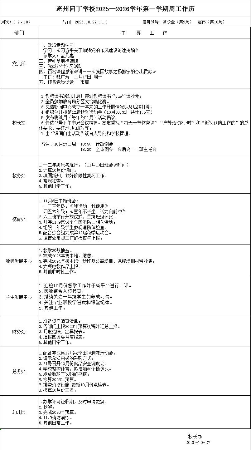 亳州园丁学校10.27---10.31日菜单