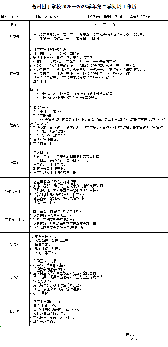 校工作日历